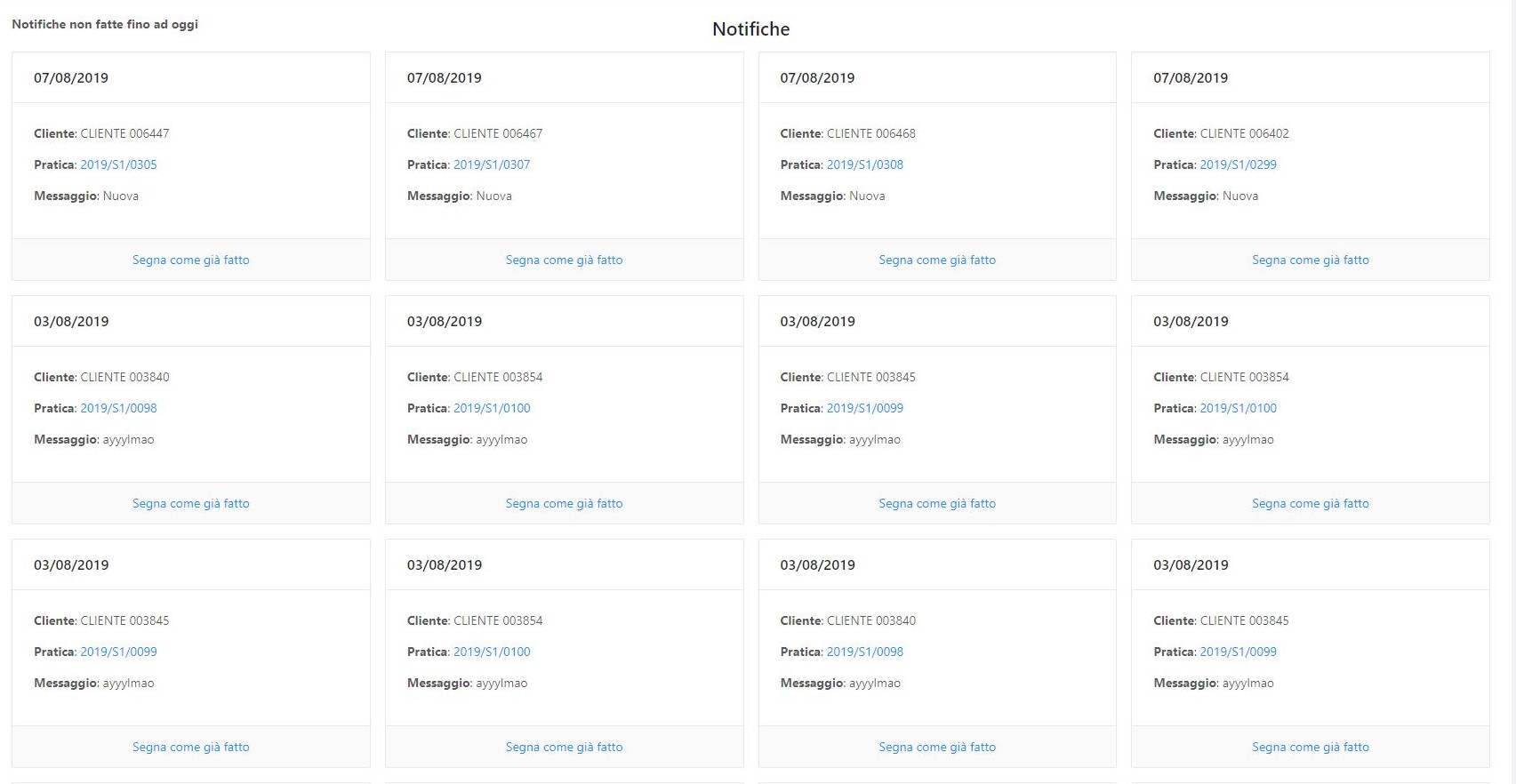 Nella sezione Notifiche vengono visualizzati tutti gli avvisi relativi alla singola utenza, che in ogni caso saranno tempestivamente segnalativi al momento del log-in tramite un pop-up non invasivo. Segnandole come “lette” o “fatte” si può spuntare la lista e lasciare le altre.